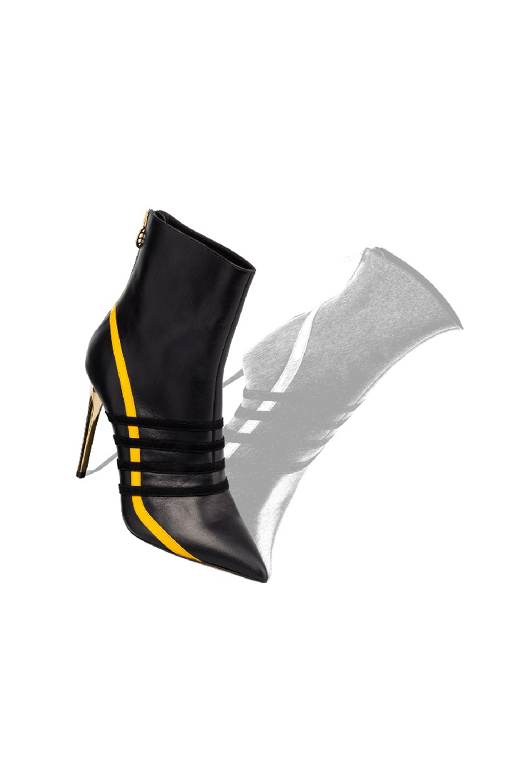 O salto dourado traduz o requinte característico da marca, enquanto a sola dourada, símbolo da identidade Elisabeth Moments, reforça o conceito de elegância que se sente a cada passo.