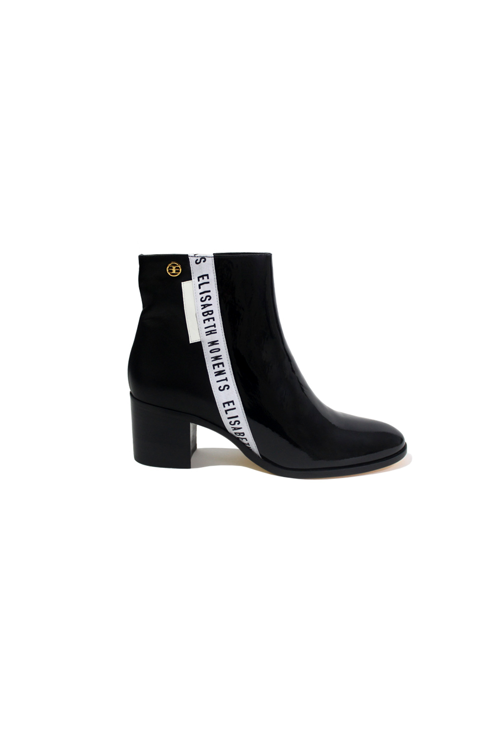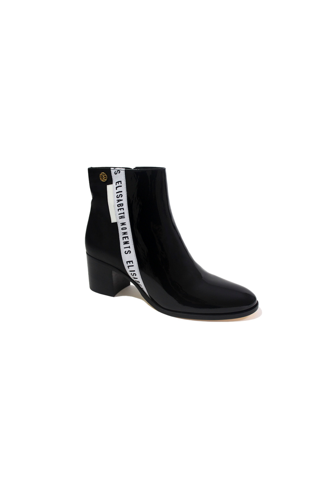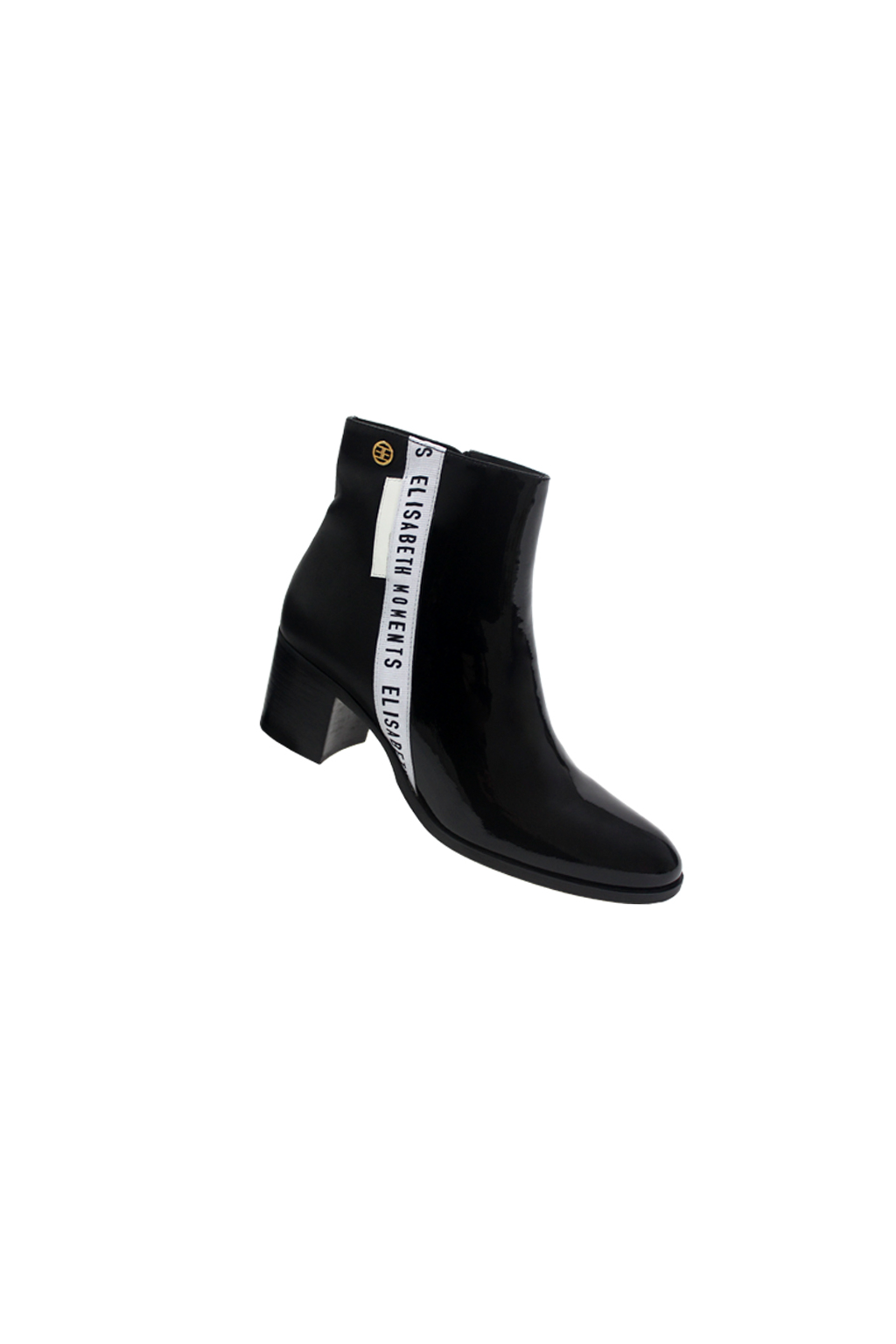Confeccionado em verniz de excelência, apresenta um jogo de contrastes sofisticado com a letring Elisabeth Moments aplicada na lateral — detalhe icónico que reforça a presença da marca de forma subtil e luxuosa.